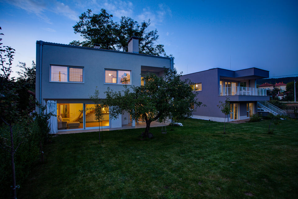 Еднофамилна жилищна сграда. Желанието на клиентите е за максимално светъл и просторен дом в бяло и дърво.
